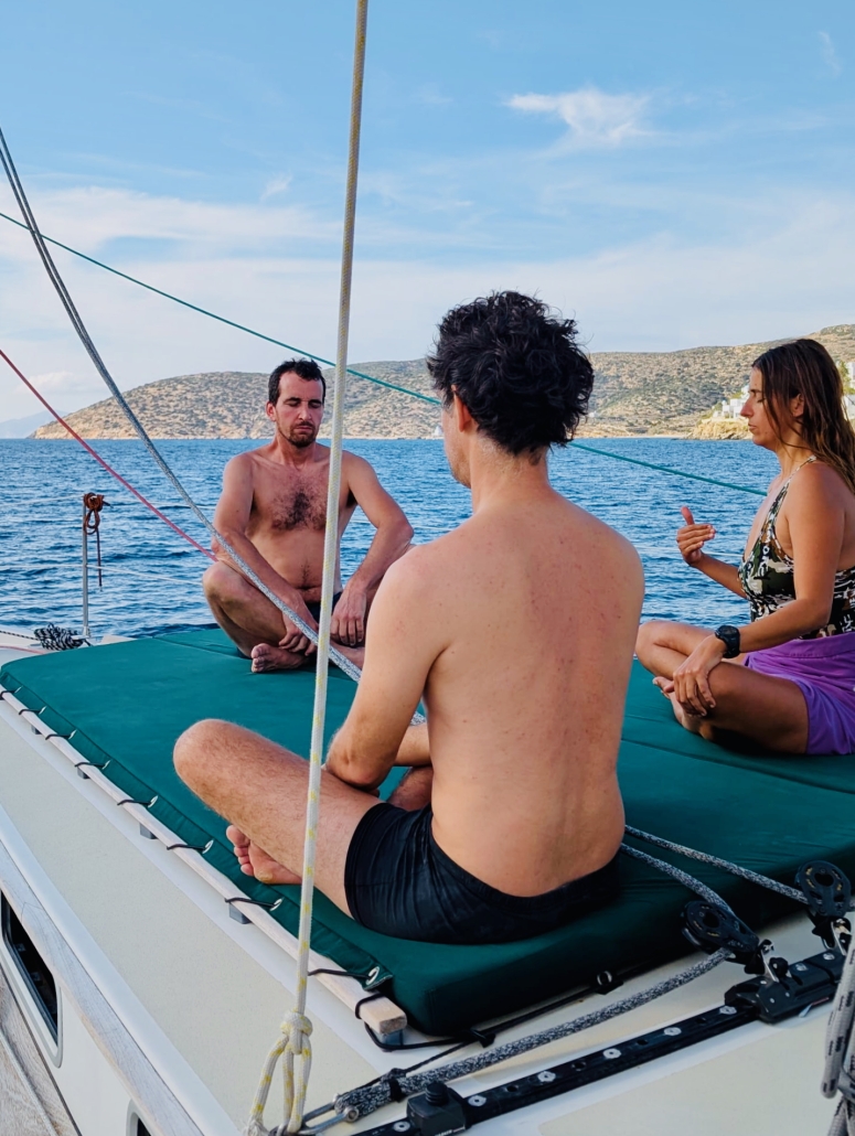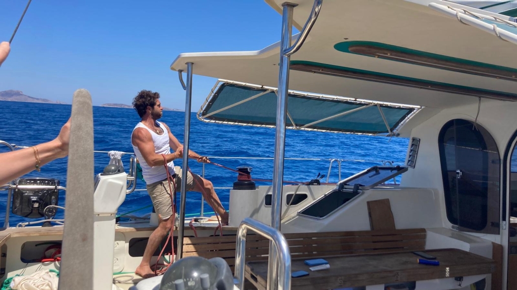 Notre circuit n’est jamais figé : il s’adapte à la météo, à l’énergie de l’équipage et à ses coups de cœur. Avec plus de 25 îles à portée de voile, les possibilités sont infinies. Naviguer, c’est aussi savoir se laisser surprendre : un site archéologique à explorer, une rencontre avec des dauphins ou une tortue, une baie secrète à découvrir… Chaque journée s’invente en fonction de ce que la mer et les Cyclades nous offrent. Ce sont souvent le vent et les envies du moment qui tracent notre route.